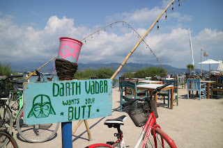 On my last full day in Bali, I had lunch at La Laguna. This place was incredible! A "gypsy chic tapas bar and restaurant" just north of Seminyak in Canggu. The location was right on the beach and after a wonderful meal, latte, and smoothie, ^^ I walked along the beach, watched the surf lessons, and finally came upon Finn's Beach Club.